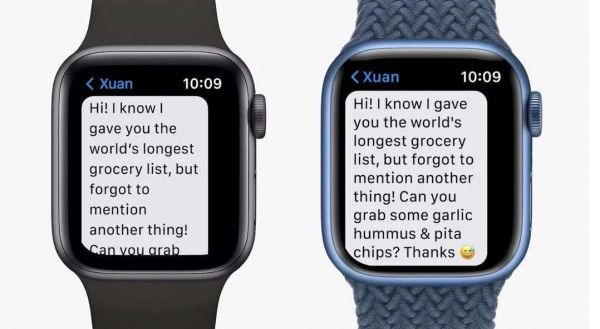 这也是迄今为止最大的苹果手表,小号Apple Watch Series 7从40毫米升级到41毫米,大号产品从44毫米升级45毫米。