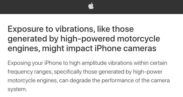 将iPhone暴露在振动中(比如高功率摩托车发动机),可能会损坏手机相机丨Apple官网