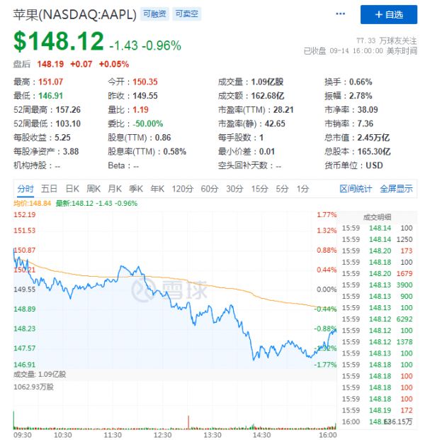 本次iPhone 13又一次被批评新意不足,加之各型号有不同程度的降价,在全球供应链紧张、产业链环节加价的基础上,毛利率或许会受到干扰,苹果股价在发布会结束时一度下跌1.5%,最终收跌0.96%,距新高又远了一点。