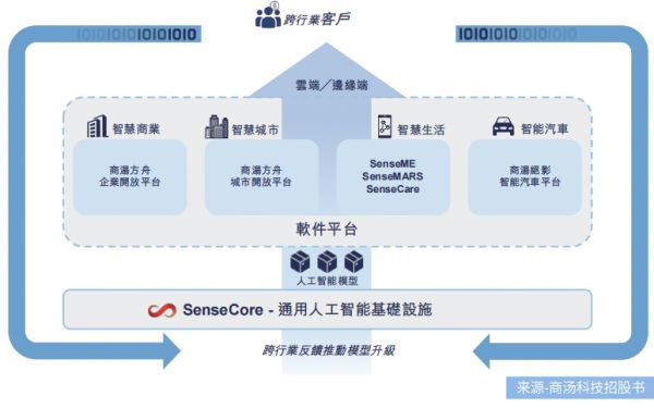 据商汤科技招股书显示,商汤已赋能百业,是行业领先的人工智能软件公司,专注于计算机视觉和深度学习技术,自主研发并建立了深度学习平台和超算中心,业务范围覆盖智慧商业、智慧城市、智慧生活、智能汽车四大板块。