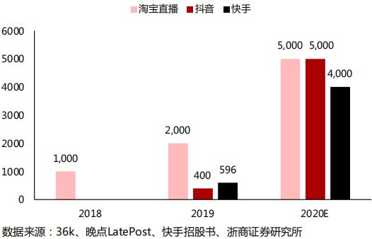 淘宝直播/抖音/快手直播电商GMV估计(亿元)