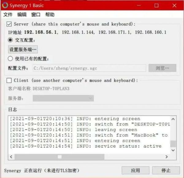 这里多插一句嘴:Synergy 的授权分 Basic 和 Pro 两种,两者最大的差异在于两台电脑间键鼠数据是否加密,以及可同时连接设备数量。如果你只是想在家里使用,Basic 已经足够胜任;但如果你想在诸如办公室等公共网络环境下使用,或是需要连接超过 3 台电脑,那么带有 TLS 加密的 Pro 版本可以防止你跨电脑输入的密码被监听,也能帮助你连接超过 3 台电脑。