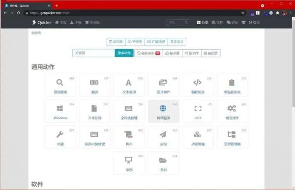 不需要担心它配置起来会很复杂:与其他类似的效率软件一样,Quicker 也支持导入外部动作。只需要在官网的动作库中稍加搜索,你就能发现其中有不少能够提高效率的小工具。