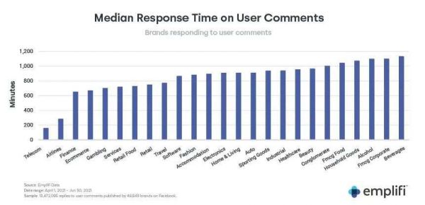 注:不同行业对Facebook用户评论的回应速度(来源:emplifi)