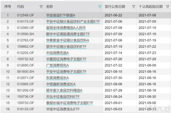 与此同时,前文提到三季度新增的16只消费主题基金中,最近成立的平安中证消费电子主题ETF及天弘食品饮料ETF,聚焦的都是沪深两市消费行业内的龙头公司。