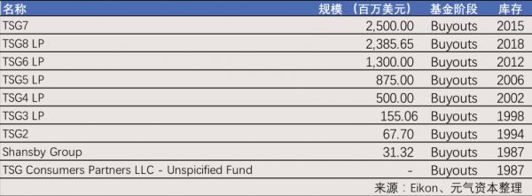 TSG是位专注于消费品投资的私募及风投公司,据TSG官网今年2月披露信息,公司在管资产约90亿美元;另据Eikon数据,截至今年8月30日,TSG在管规模约为61.9亿美元。