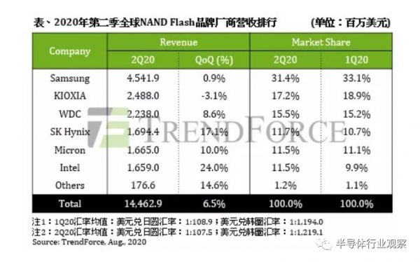 从TrendForce发布的数据来看,SK海力士通过收购英特尔的业务使之在闪存业务上的市场地位急速提升,从整个市场来看,闪存市场的前两名也将由韩国厂商占据,他们两个加在一起的市场份额也将超过整个闪存市场的一半。或许,SK海力士的这一步不仅旨在缩小与三星之间的差距,也为当时排名第二、第三位的铠侠和西部数据造成了一定的压力。