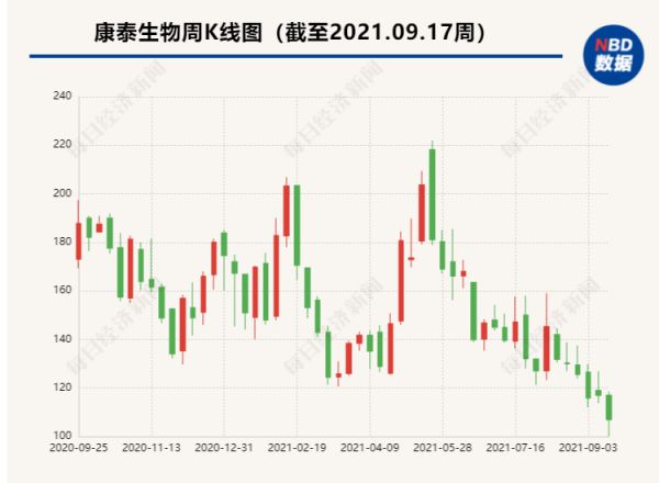 和国际医学股价走势类似,康泰生物也是自今年5月17日创出221.9元/股的年内高点后,股价便开启下跌模式。截至9月16日,股价已经跌到102元/股,4个月跌幅达49.73%。