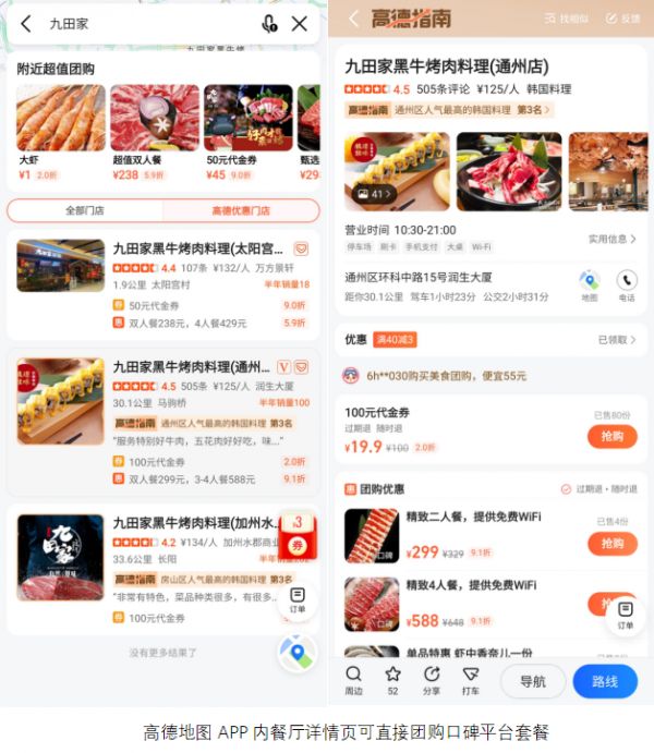 “和朋友约饭,在(大众)点评上看好了餐厅,然后就打开地图查导航怎么走。地图APP里一搜,还没等我看清,直接给弹出来一张团购满减券,正好周末吃饭就能用。这还没完,(地图APP)还能团购套餐和专属优惠。”