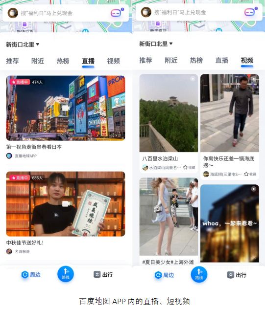 百度集团近两年在力推小程序和直播业务,百度地图APP由小程序所承载的服务,实际上无形中就是在为小程序提供落地场景。还有与出行服务稍显违和的直播功能,出现在百度地图内,则是把地图APP当做了流量入口。