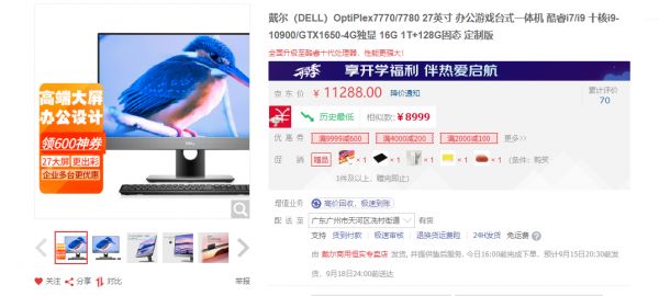 该机最大的弱点,居然是在一体机最重要的屏幕上。目前国内有卖的戴尔OptiPlex 7770,基本全都只能选择FHD分辨率的屏幕,显示效果自然远不如联想、华为清晰细腻。不过,这款产品(i9-10900+16G+1T HDD+128G SSD+GTX1650显卡)的版本仅售11288元,谁能想到品牌厂商也有了性价比?