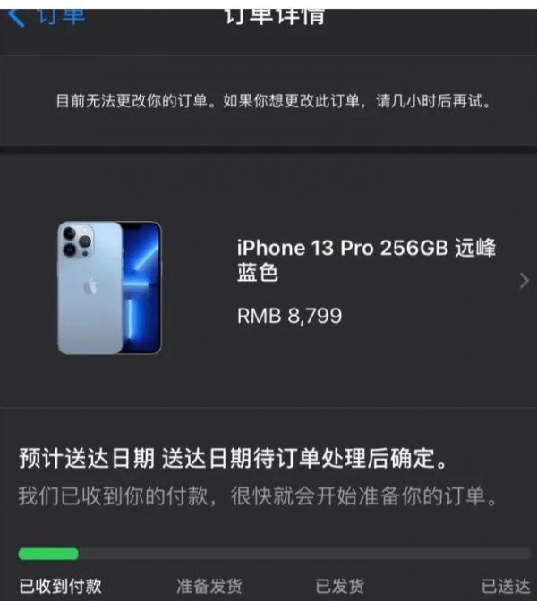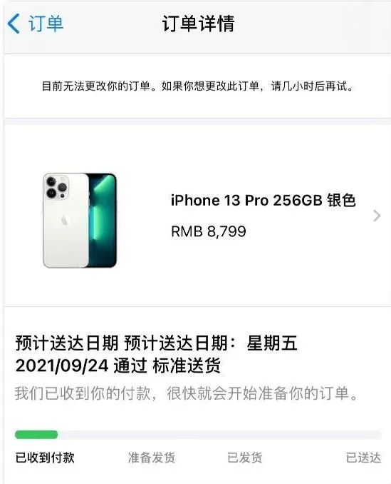有网友晒出自己成功在苹果官网上抢到iphone 13新机的截图: