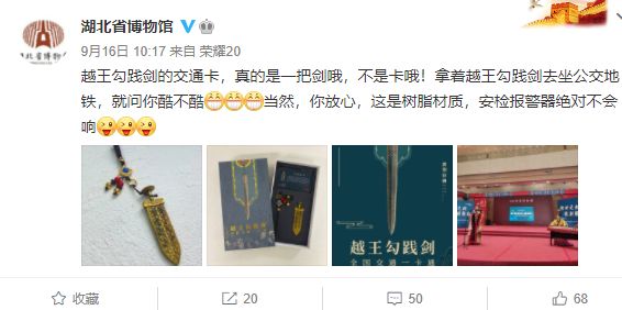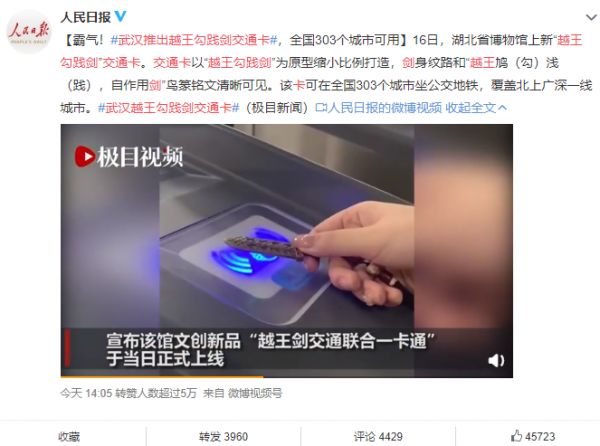 霸气,这个城市推出越王勾践剑交通卡,全国303个城市可用