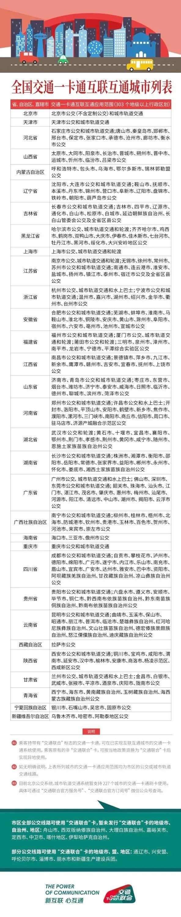 放假了,想去外地玩,只要你的卡上有“交通联合”标志,就可以顺利在各大城市乘坐公交、地铁。