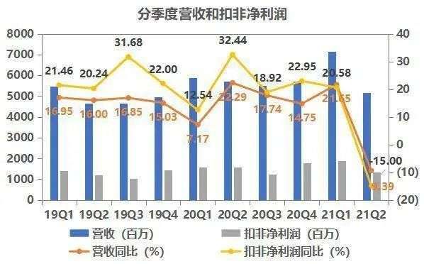 海天2019年至今的季度营收和净利润情况。最近两个季度明显下降 数据来源/海天财报
