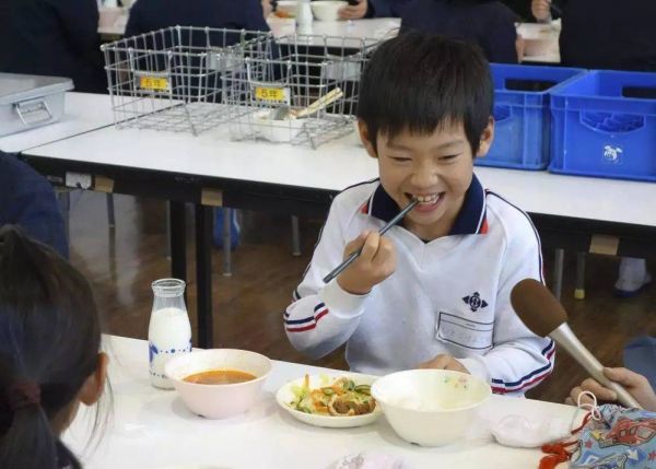 林玲转学到日本后,从零开始学日语,用一年多的时间适应了新的语言和新的学校生活。在她的班上,值日的同学把饭菜分完,脱了帽子和白大褂,带领全班同学一起喊“我开始吃饭了”,午餐才正式开始了。班主任也坐在其中,同饮同食。 一年级的孩子,对自己的食量估算不准确,偶尔会有剩饭剩菜;高年级的,就不允许有剩下来的。在领餐时,大家都情愿少点,不够再添。