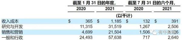 观察这些案例可以发现,它们的共同点是收入相对单一,基本无法满足高昂的企业开支。从GitLab的支出清单来看,销售费用、研发费用占到了其支出大头,截至2021财年,GitLab销售费用达到1.54亿元、而研发费用也高达1.07亿美元。