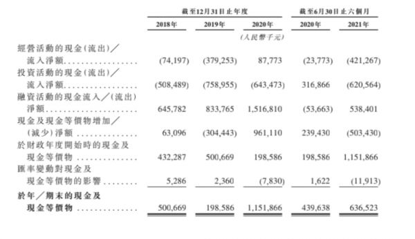 不仅如此,喜马拉雅在2018年、2019年和2020年这三年内,仅2020年经营现金流为正,其余报告期内经营活动现金流均为负,流入净额分别为-7420万、-3.79亿、8777万,而在2021年上半年,流入净额为-4.21亿元。
