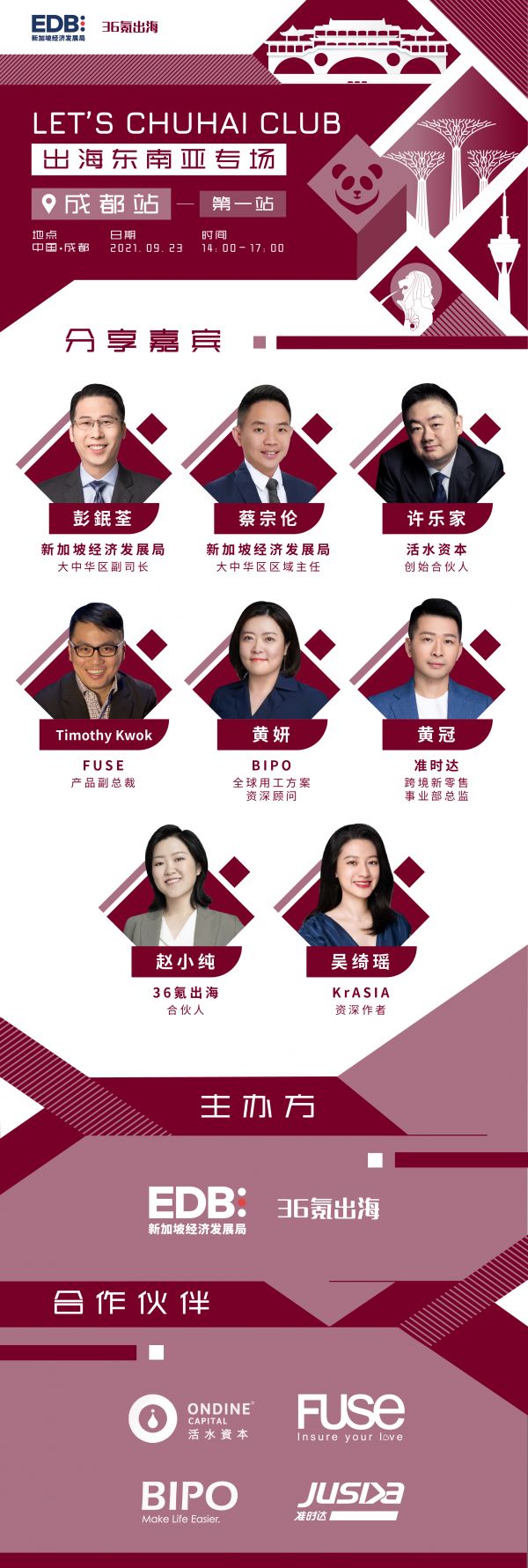 “LET'S CHUHAI CLUB-出海东南亚系列沙龙”活动以分享和交流为核心,仅邀请明星初创、大公司及相关投资机构掌舵者共同参与。出海东南亚系列沙龙首站将于9月23日在成都和大家见面。我们希望为有志于出海东南亚的中国企业提供最独到的见解和深度交流机会。