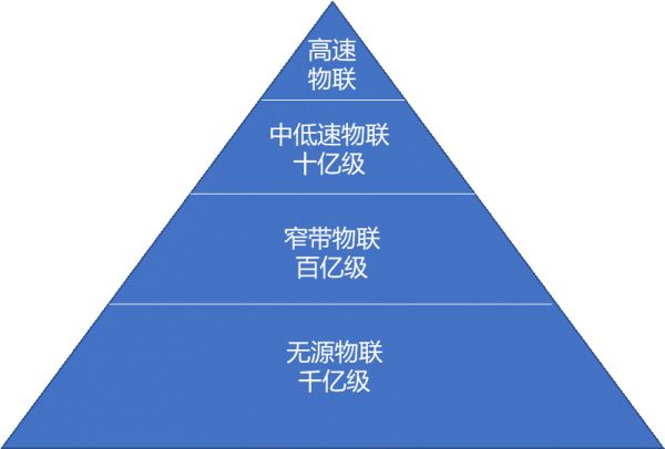 众所周知,物联网主要分为高速物联、中速物联和窄带物联三个不同的速率档位,其中大概占比为“10%-30%-60%”的金字塔分布已经成为业界共识。