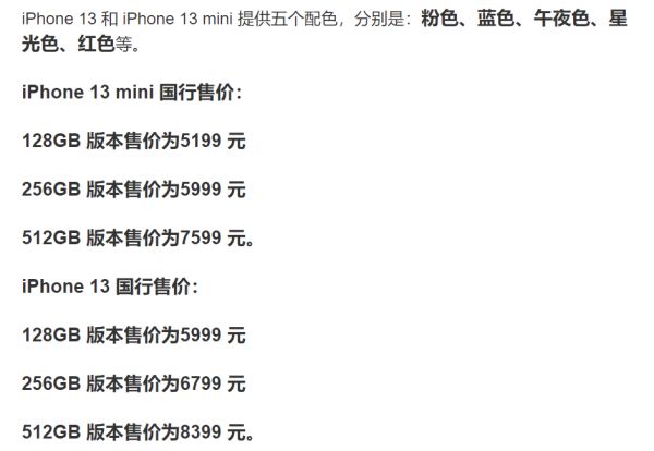 iPhone 13香吗?从价格和产品规格来看,确实挺香的。根据苹果官网公布的价格,iPhone 13 mini的起售价为5199元,iPhone 12 mini的起售价则是5499元,起售价降低了300元。
