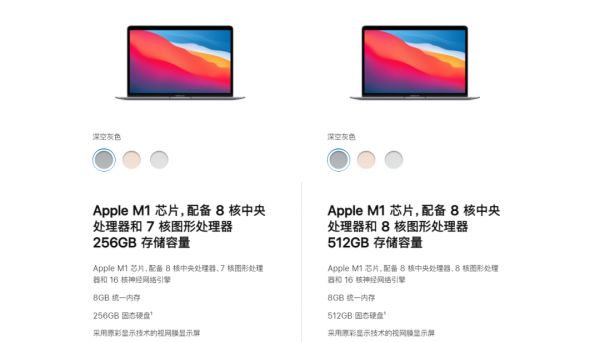 芯片的差异是区分产品的好方法,在去年的M1芯片上苹果就使用了类似的产品策略。MacBook Air不同的存储版本,搭载的M1芯片在GPU上是有区别的,256GB存储容量版本搭载7核版M1,512GB版本则是8核版,一颗核心上的区别就能引导部分用户选择更大存储版本的产品。