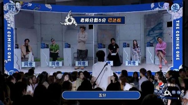 展开之前,先简单的介绍一下节目的评分制度。今年的“明日”海选采取的是观众+评审的双评分制度,六位导师中有五人给“同意”就算通过,或者200位现场观众中有150人为你投票就算通过。两者得其一,就能晋级。