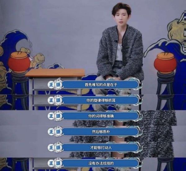 在《明日创作计划》中,王源作为节目的选手老师之一,后台采访时,也提到过这个观点。在说到选手要不要买菜的那首写给妈妈的《艳丽芬芳》时,他说他觉得这种题材的歌曲其实很难写,首先要有足够抓耳的旋律,其次就是歌词要够准确、够质朴,因为只有这样,才能打动人。