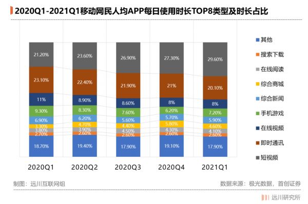 当内容产品越来越多,网民都快不够用了。当短视频横空出世的时候,它抢走的就是聊天软件、游戏、爱优腾们的生意。如下图所示,这些不同类别的产品,一直存在此消彼长的现象。