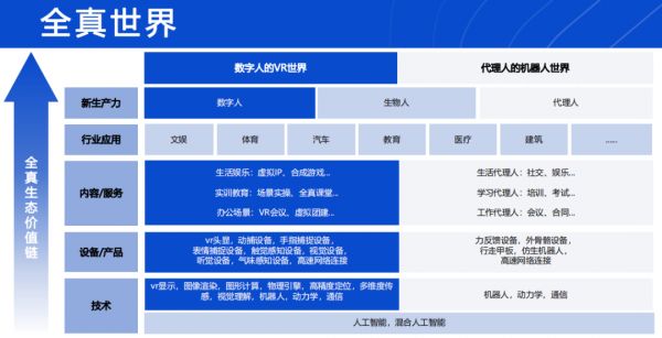 从更高维度来说,这些不同领域的探索,最终都会通往“全真世界”。在STEPVR创始人郭成的构想中,未来生物人利用VR成为数字人,代理人则位于真实世界代替生物人进行探索,而这种替代,将全面革新文娱、体育、汽车、教育等等一系列行业。
