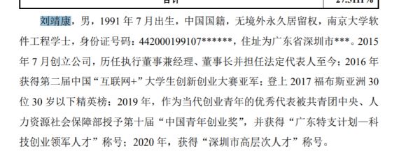 作为公司创始人,刘靖康还历任执行董事兼经理、董事长并担任法定代表人至今。2017年,他登上2017福布斯亚洲30位30岁以下精英榜;2020年,获得“深圳市高层次人才”称号。
