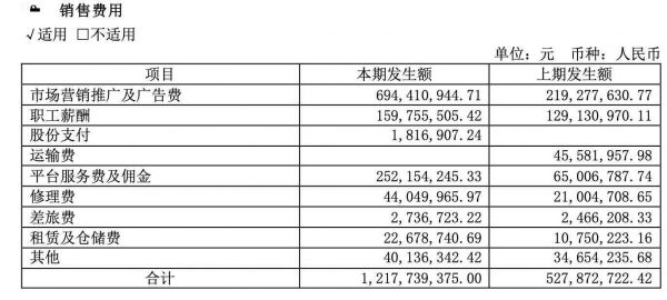 庞大的销售费用支出中,用于市场营销推广及广告费用高达6.94亿元,去年同期为2.19亿元,相比去年同期,市场营销推广及广告的支出同比增长217%。可以看出,科沃斯是一家重营销轻研发的科技企业。也侧面反映出行业竞争激烈,需要不断加大广告投入以此获得C端用户群体。包括科沃斯主要竞争对手的石头科技,在去年销售费用也是大幅提升75%。当然,庞大的广告投入下,也使得科沃斯品牌在市场上展现出强劲的竞争力,并带动了整体营业收入的增长。
