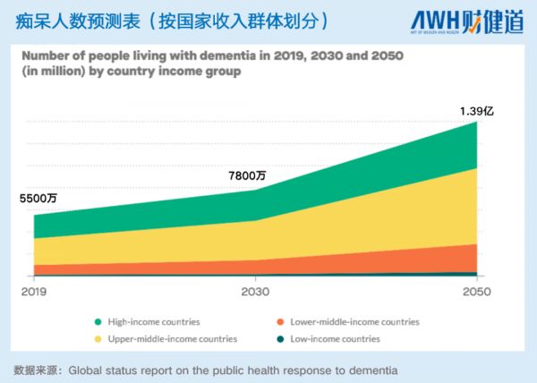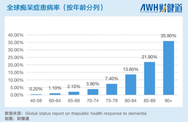 老年痴呆人群正在快速扩大,据世界卫生组织推测,全球每3秒钟就有一位痴呆症患者产生;到2030年全球患者将突破7800万人,而2050年可能达到1.39亿人。
