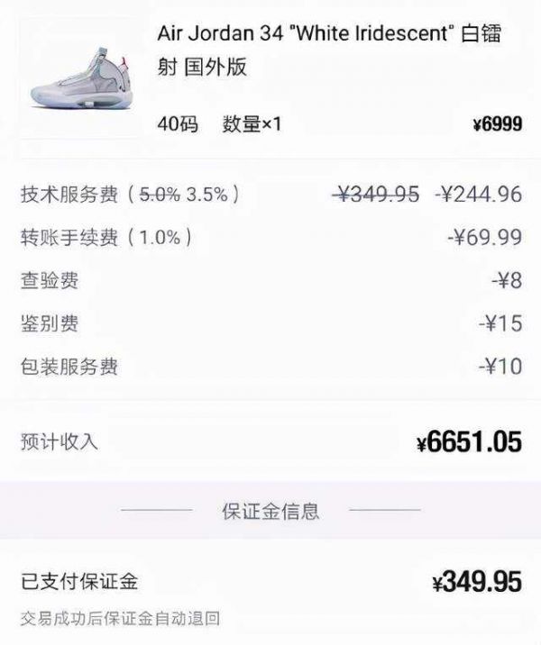 另一方面,这种定价机制本身也是“有利”平台本身的,还是以得物为例,只要平台卖家每卖出去一双鞋,得物都会从交易价中抽取五项费用,分别是技术服务费、转账手续费、查验费、鉴别费和包装服务费。也就是说,放任炒鞋客定价,价格越高,得物从中获利也就越高。