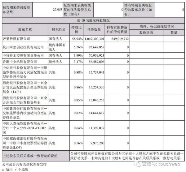 截至2021年6月30日,芒果传媒有限公司持有芒果超媒58.94%的股权,阿里持股为5.26%,阿里为第二大股东;中移资本控股有限责任公司持股为3.99%,香港中央结算有限公司持股为3.17%,