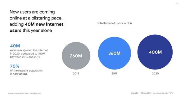 2020年底,谷歌、淡马锡控股集团和贝恩咨询公司共同发布的《2020年东南亚电子商务报告》中显示,东南亚地区的互联网总用户数达到了4亿,占总人口数的70%,疫情也推动着用户使用在线数字服务,东南亚电商市场交易总额在过去一年增长了63%(vs 2019年)。在此背景下,东南亚电商代运营也受到了资本市场的青睐,接连抛出了橄榄枝。