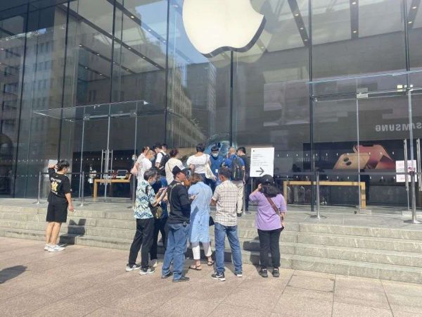 相比于苹果店外黄牛们起起落落的心,苹果直营店里的用户迫不及待地开箱。10点刚到,南京西路苹果店门外就排起了长龙。