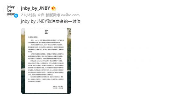 9月23日,“jnby_by_JNBY”微博再度回应致歉,称开放退货渠道,并成立专项小组启动自查。