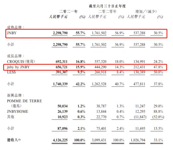 截至今年6月31日止,江南布衣2021财年共录得41.26亿元的总收入,上一财年为30.99亿元,同比增长33.1%;2021财年净利润为6.47亿元,上一财年为3.47亿元,同比增长86.7%。江南布衣表示,期内收入增长主要系线上渠道快速增长及线下门店规模同步扩大所致。