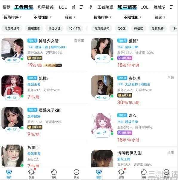 遗憾的是,大神玩家的比例是很有限的,也满足不了玩家的社交需求,为此陪玩平台开始逐步向现实低头,成为陪玩的门槛也一再降低。甚至即便是游戏技术不那么精湛的情况下,“只要有个麦克风”就能成为陪玩,而在玩游戏的同时又能挣钱,也就成为了不少人成为陪玩的原因。然而,陪玩提供情感成本来满足用户社交需求是这个行业的基础,但这种社交行为一旦与金钱产生了强关联后,自然而然也就会“变味”。