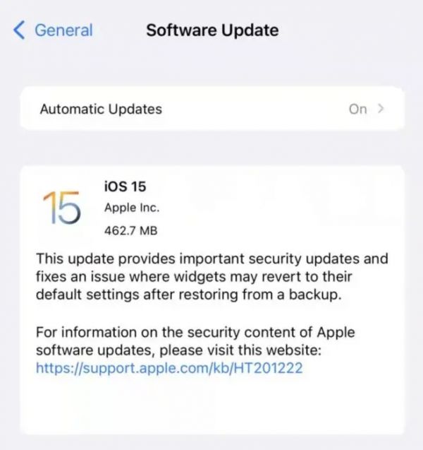 苹果官方在系统更新中表示,修复了小部件在从备份还原后可能恢复到默认设置的问题