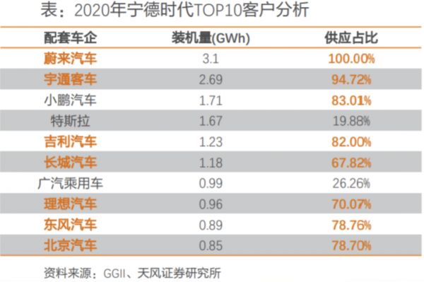 日前,天风证券研究称,电池市场份额集中度较高,叠加动力电池供不应求处于卖方市场,目前电池供应商的话语权较大,削弱了主机厂对产业链的把控能力。2021年1-7月,国内动力电池装机量CR3达到72%,龙头企业宁德时代占比接近50%。而2020年宁德时代对吉利、长城、蔚来、小鹏、理想等车企的供应占比都超过了60%。