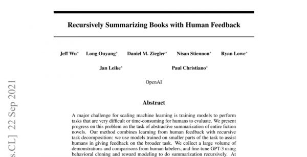 不过,本次OpenAI首次将其在去年6月推出的大型语言模型GPT-3进行应用,开发出能对文学名著等图书进行总结概述的算法模型。