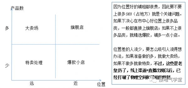 在传统线下门店里,关于卖场位置也有个矩阵模型。(如下图)