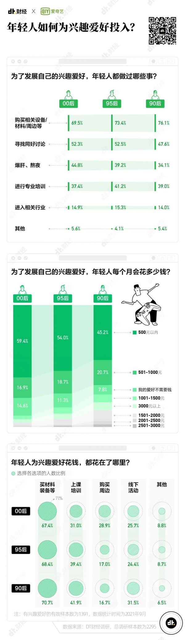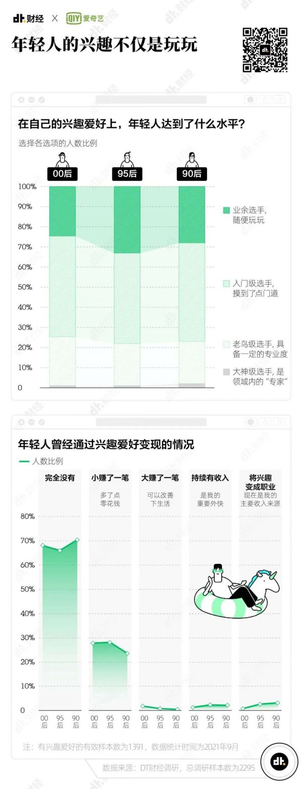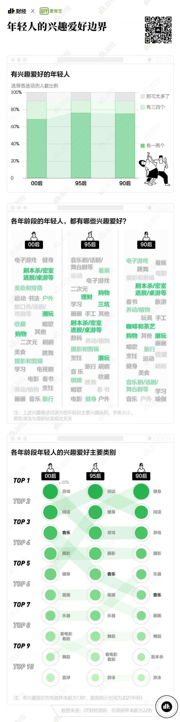 9月,我们联合爱奇艺发起了《2021当代年轻人兴趣爱好大调查》。年轻人的兴趣与热爱,也是爱奇艺一直以来的重点发展方向。围绕这一点,爱奇艺陆续推出了说唱类综艺、针对舞蹈爱好者的《舞蹈生》、围绕年轻人喜欢的剧本杀密室等线下娱乐的“迷综季”…… 综艺内容和年轻人的兴趣热爱,正在相互呼应和影响,而由此焕发出的庞大活力也在不断拓展更多人对文化与消费领域的边界。