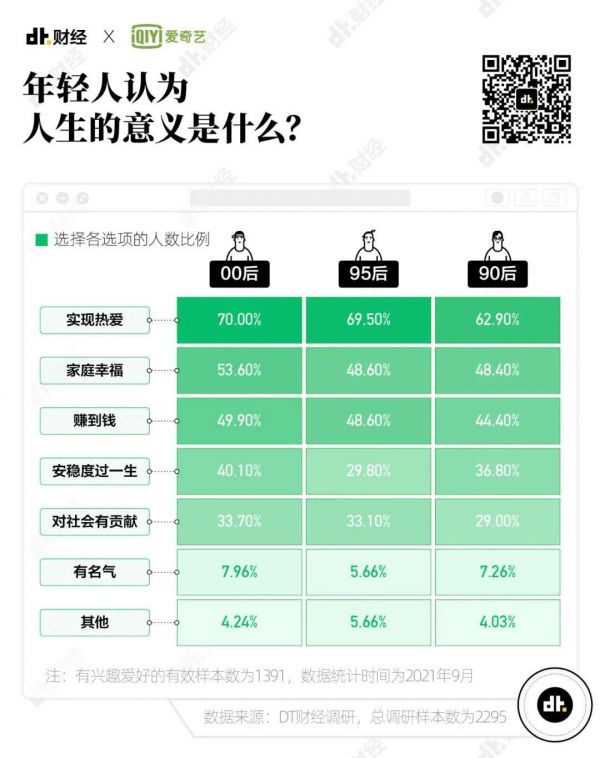 在这次调研的结尾,我们还问了大家人生的意义寄托于哪里,被选最多的答案是实现热爱。