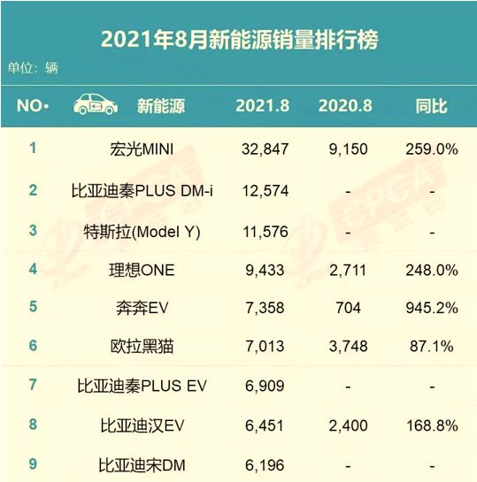 在燃油车低迷、新能源火爆的双重影响下,新能源汽车已成为影响整车厂销量排名的一个关键因素。正是由于新能源汽车的热销,8月份比亚迪以6.8万辆的批发销量进入排行榜前十名,这也是比亚迪时隔多年后“杀进”前十。