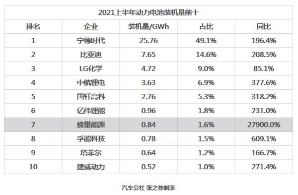 好的一点是,在欧拉品牌的带动下,长城汽车新能源汽车销售逐渐打开局面。2021年上半年,欧拉黑猫以3.37万辆的销量进入国内新能源汽车排行榜前五名,长城集团旗下蜂巢能源装机量也成功闯入动力电池装机量前十名,同比大增27900%。
