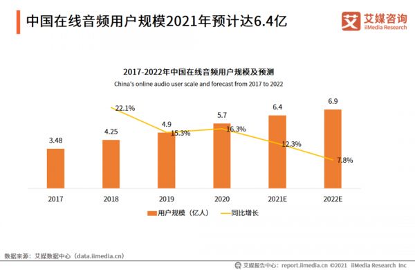 根据艾媒咨询发布的《2021H1中国在线音频产业运行监测调研报告》显示,中国在线音频用户规模保持连续增长态势,2022年在线音频用户规模达到6.9亿人,整体而言,行业规模正在不断扩充,队伍也正在庞大。