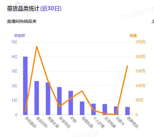目前,iPhone为代表的高客单价手机数码产品已成为带动雪梨直播间GMV的重要品类。在近30日的直播数据中,手机数码产品以4.01亿高居榜首,排在第二位的食品饮料仅2.33亿。